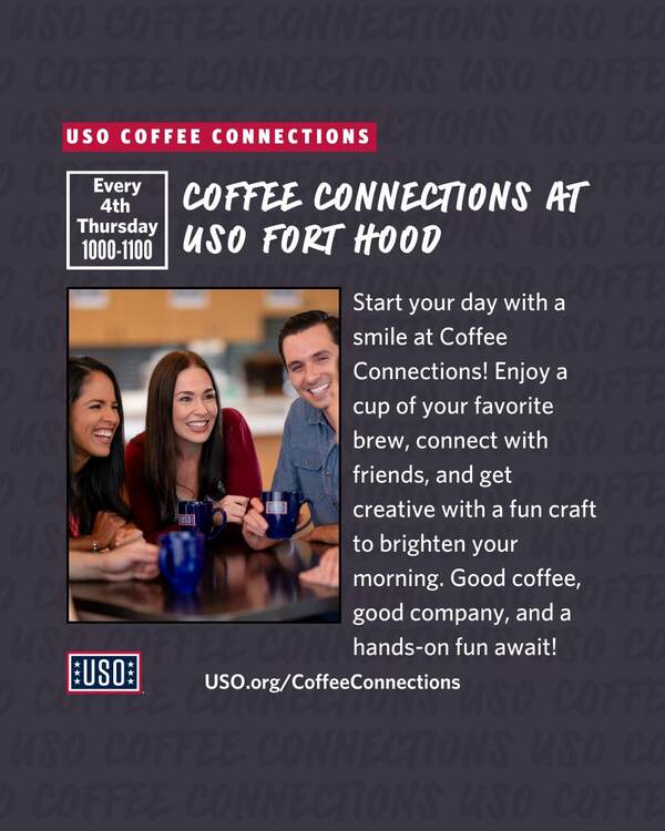 Join the USO and other active-duty military spouses from the community to connect over coffee and make new friends! This is a great opport…