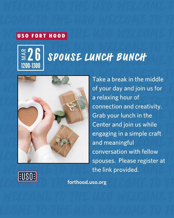 Join the USO and other active-duty military spouses from the community to connect over coffee and make new friends! This is a great opport…